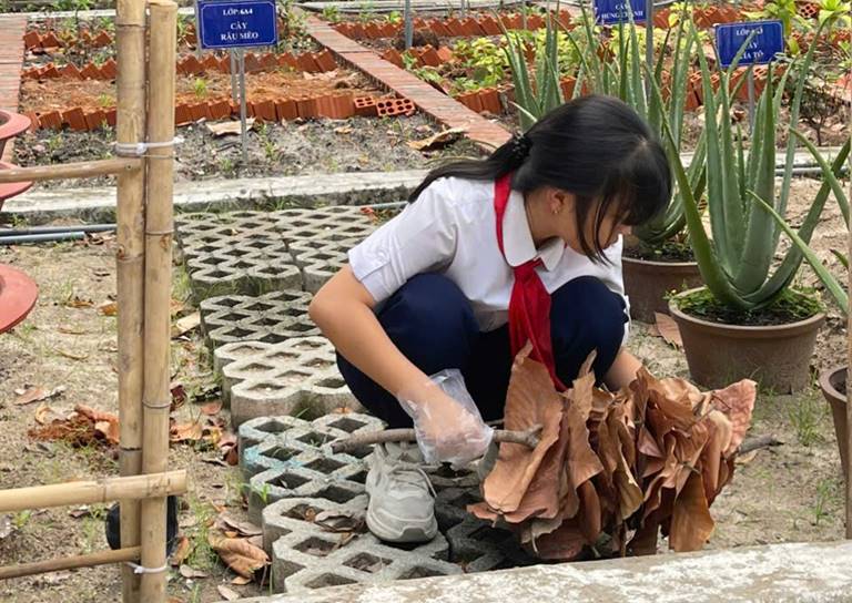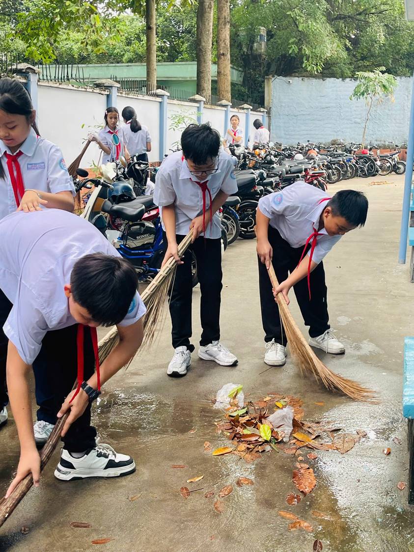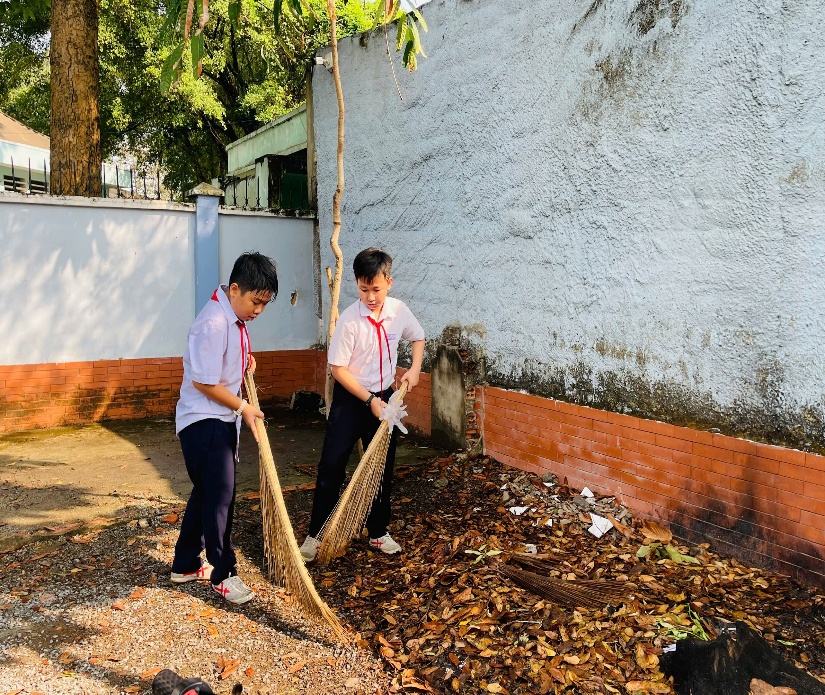 Nhìn những đôi bàn tay nhỏ nhắn của các em đang cầm cây chổi xương, tỉ mỉ quét dọn từng chiếc lá khô, từng mảnh rác nhỏ nơi góc sân trường, cô cảm thấy rất tự hào. Đó không chỉ là một nhiệm vụ trong tiết học Hoạt động trải nghiệm hướng nghiệp, mà chính là lúc các em đang viết nên bài học đẹp nhất về tình yêu thiên nhiên.