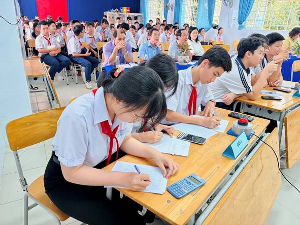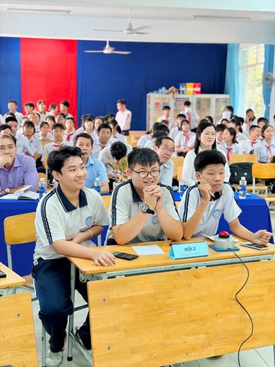 Ngay từ khi chương trình bắt đầu, không khí tại hội trường trở nên sôi động với sự tham gia tích cực của các đội thi cùng sự cổ vũ nhiệt tình từ học sinh. Những tràng pháo tay, tiếng reo hò và tinh thần quyết tâm của các đội đã góp phần tạo nên một sân chơi học tập hấp dẫn và giàu tính tương tác.